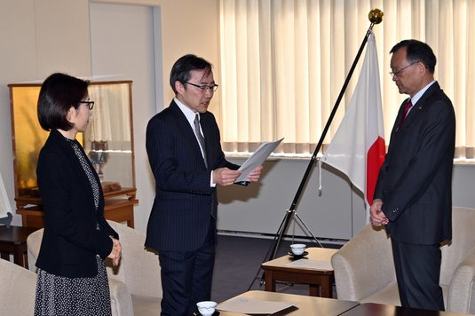政治経済学部経済学科の大熊一寛教授が1月25日に、平塚市役所で同市の落合克宏市長に「平塚市総合計画審議会」の会長として「(仮称)次期平塚市総合計画(2次素案)」についての答申書を提出しました。この計画は、市政運営の総合的指針を定める長期計画で、現行計画である「平塚市総合計画~ひらつかNEXT~」の計画期間が今年度で終了となることから、市制100周年を展望して、2031年度までの計画として策定されるものです。大熊教授が会長、神奈川大学教授の湯川恵子氏が副会長を務め、市民らも参加した同審議会は、昨年7月から今年1月にかけて4回にわたって会議を開き、その内容について審議してきました。