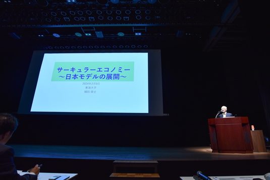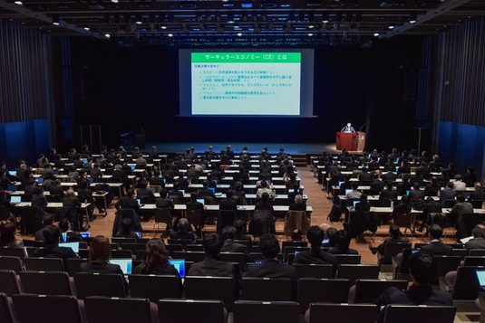 株式会社日立製作所と国立研究開発法人産業技術総合研究所(産総研)はサーキュラーエコノミー(CE)の実現に向けた連携研究プロジェクトである「日立-産総研サーキュラーエコノミー連携研究ラボ」を設立しました。その第1回オープンフォーラム「CE社会の実現に向けた道のりとその方法論について」が2024年2月5日に日本橋三井ホールにて開催され、石村和彦・産総研理事長、小島啓二・日立製作所社長兼CEOの挨拶に続いて、経済学科の細田衛士教授が「サーキュラーエコノミー: 日本モデルの展開」と題して特別講演を行いました。
