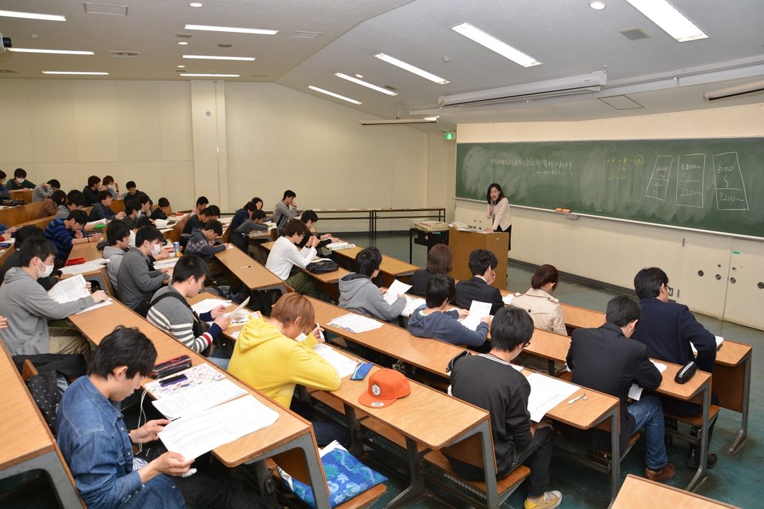 また6日のガイダンスは、学科・学年毎に実施。このうち2年次生対象のガイダンスでは政治学科主任の小林隆教授が、「皆さんには残りの大学生活の中で、睡眠時間や授業時間以外で自由になる時間が大まかにいって1万2千時間あります。それだけの自由時間があるのは大学生の間だけです。資格を取るのもよいでしょうし、語学の勉強もするのもよいと思います。存分に活用してください」と激励。経済学科主任代行の西田小百合准教授は、「2年次生は、必修科目が少なくなって授業履修の自由度が上がる反面、気を抜いてしまう恐れもあります。しっかりと自覚を持って学生生活を送るよう心がけて充実した日々を送るようにすることで、1年後には大きな違いが出てくると思います」とアドバイスしました。また経営学科主任の遠藤誠二教授は、「社会のグローバル化が進み、今現在は著名な企業でも5年後にどうなっているかがわからない時代になっています。それは行政機関も一緒。一つの企業や機関にとらわれず、さまざまな分野で活躍できる人材になれるようしっかり学んでほしい」と語りました。またその後、各学科の教員が授業履修にあたっての注意点などを説明しました。