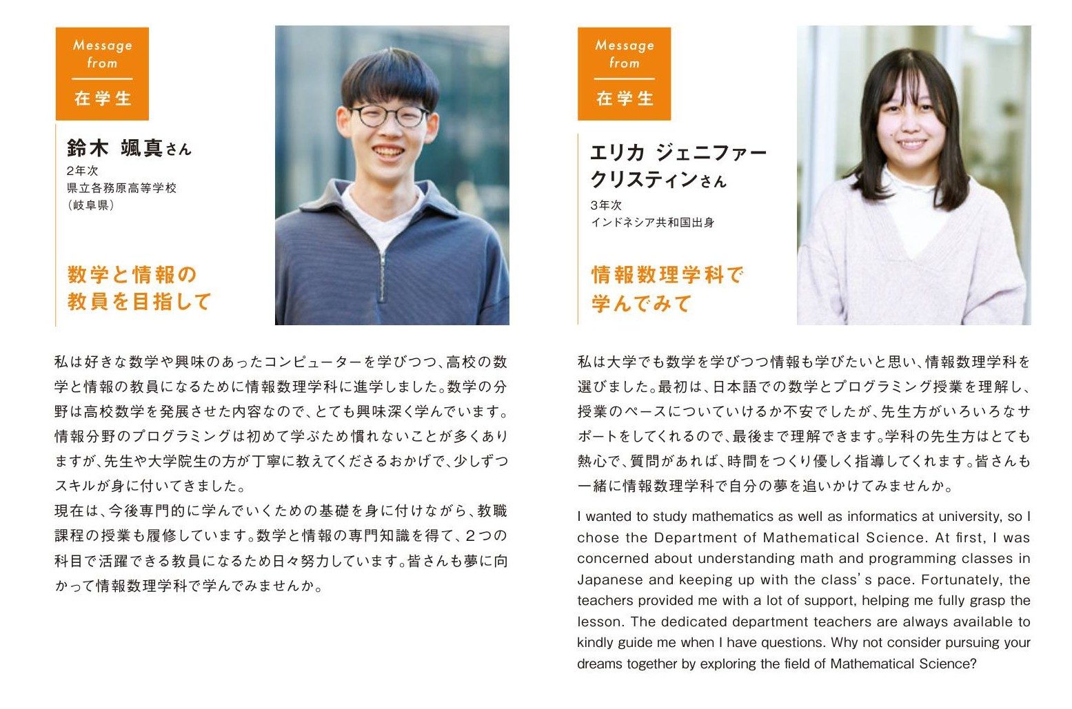 こちらのパンフレットで他のメッセージも読むことができます(理学部のパンフレットに移動します)