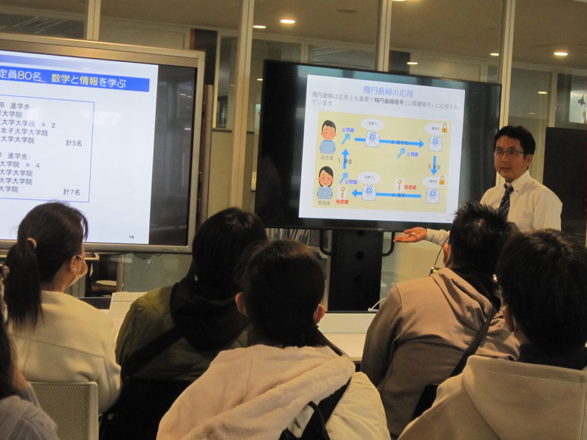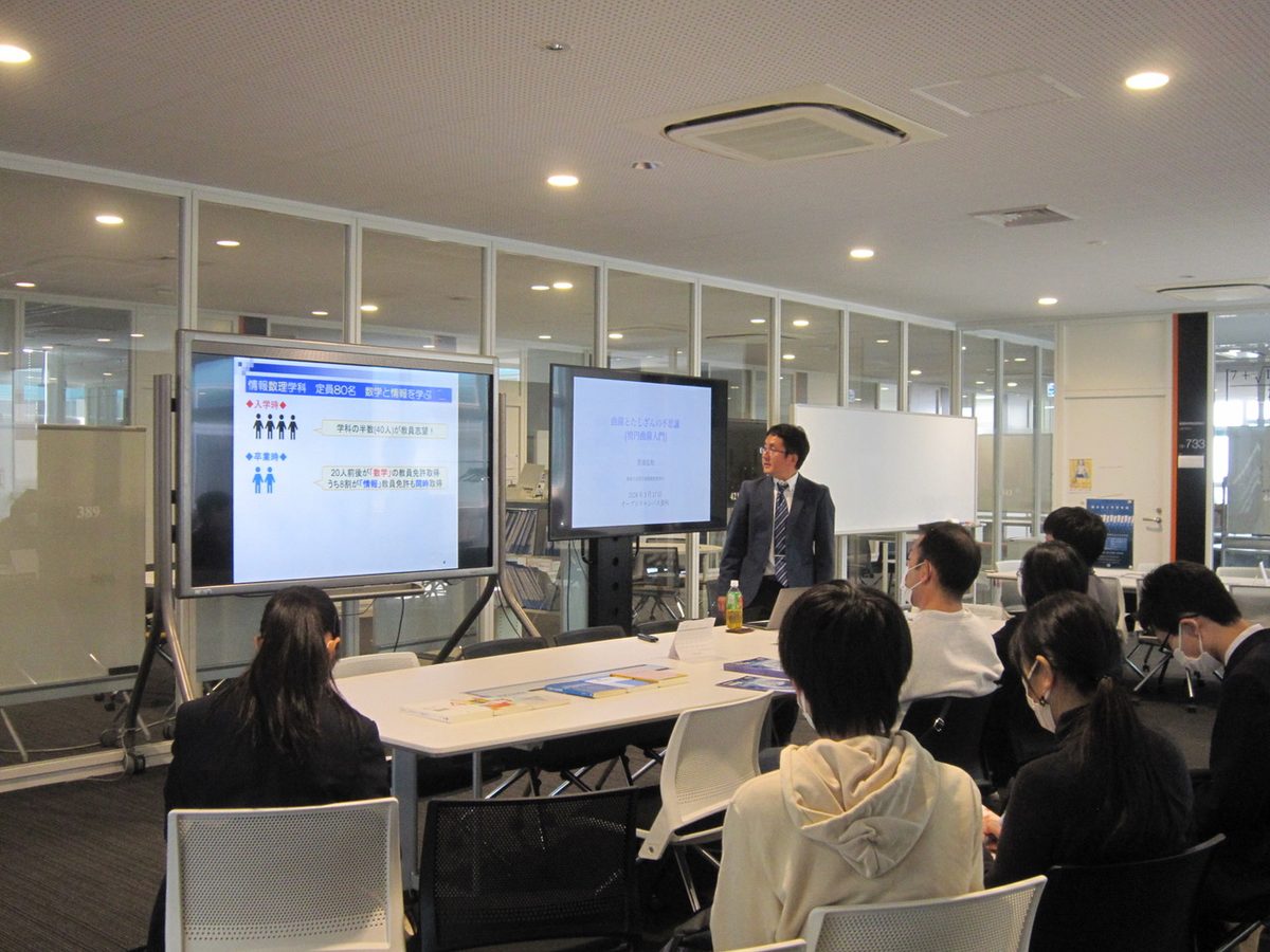 2024年3月17日(日)に東海大学湘南キャンパスでオープンキャンパスが行われました。理学部情報数理学科では、那須弘和教授が担当され,卒業後の進路の話を中心に学科説明を行い、参加者のみなさんにミニ講義をご体験いただきました。お忙しい中、多くの方にご参加いただき、心よりお礼申し上げます。今年度のオープンキャンパスは今回が最後ですが、来年度も定期的にオープンキャンパスを実施してまいりますので、受験をお考えの方や進路についてご検討中の方はぜひともご参加ください。