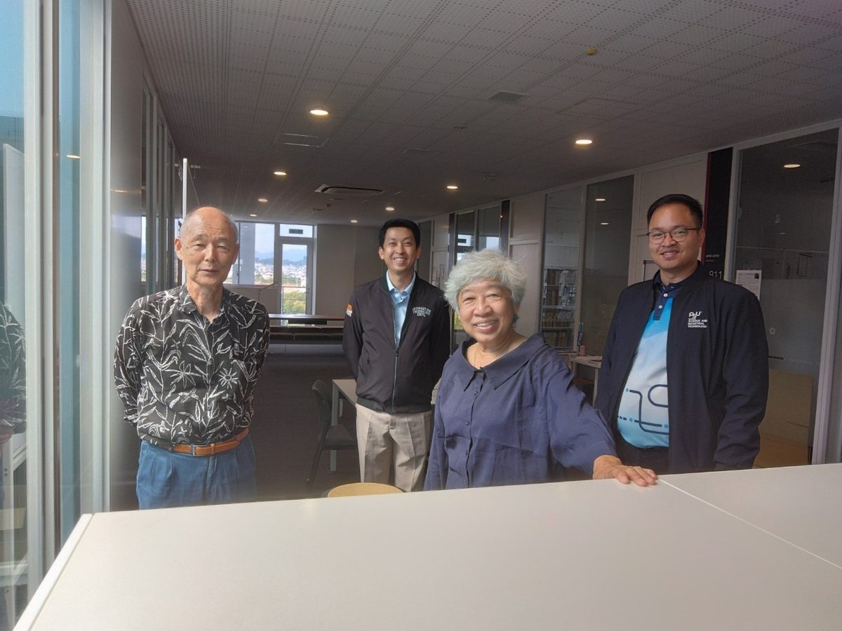 9月30日、10月1日の二日間にわたって、プリンス・オブ・ソンクラー大学のナタポン・ブーンナム助教授、モンクット王工科大学ラートクラバン校のパッキーニ・チサクル名誉教授とブーンプラサート・サラクラタナサクル助教授の3名が研究活動のため、東海大学理学部数学科を訪問しました。ブーンナム助教授と、チサクル名誉教授は、東海大学大学院において、博士の学位を取得された研究者です。指導教員の田中實名誉教授との研究打ち合わせを18号館で行いました。研究対象は、幾何学の分野の1つである、回転面上でのcut locusについてです。東海大学理学部数学科はモンクット王工科大学と共同でシンポジウムを開催するなど、20年以上研究交流を続けており、数学科の笹木集夢学科長はじめ、土井誠名誉教授、山口勝名誉教授、山本義郎教授、前田陽一教授、長井秀友准教授とも旧交を温めました。