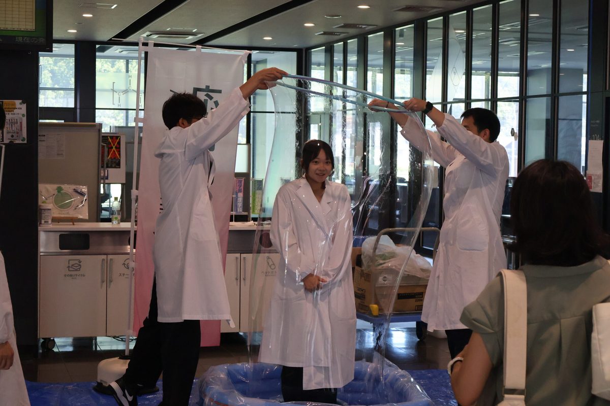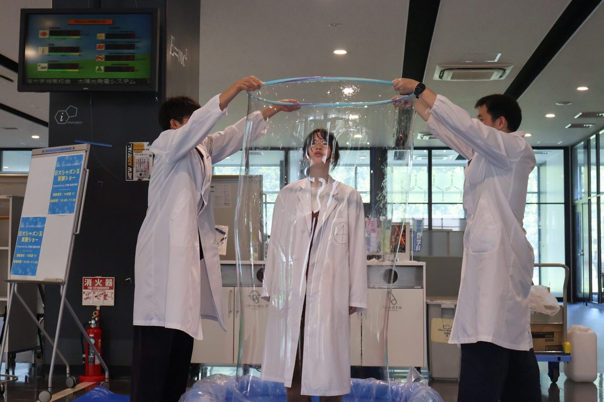 一度は入りたくなる?!応用化学科企画の【巨大シャボン玉ショー】