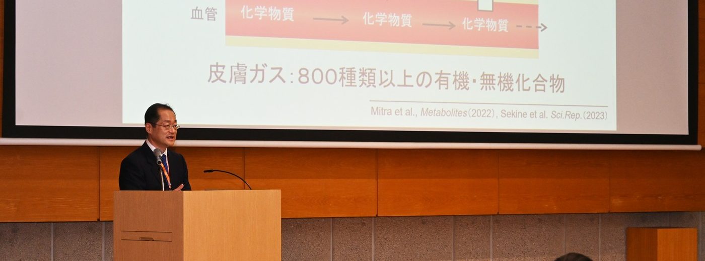 理学部化学科の関根嘉香教授が会長を務める「皮膚ガス研究会」が、12月17日に東京都・建築会館で「第1回皮膚ガス研究会大会」を開催しました。同研究会は、人の皮膚から放散される微量の生体ガスである「皮膚ガス」研究の第一人者である関根教授を中心に、技術の社会実装を目指して研究機関や企業が情報を共有するプラットフォームとして2025年3月に設立。大会当日は約100名が参加し、研究者らによる講演や技術を活用した商品開発に取り組む企業によるプレゼンテーションなどが行われました。