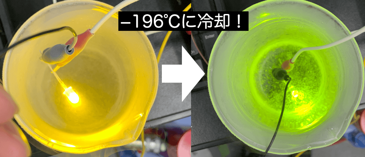 実験では、普段から低温での実験を行っている佐々木海渡先生にレクチャーしていただきながら、液体窒素を使って金属やLEDを冷やし、その変化を観察しました。