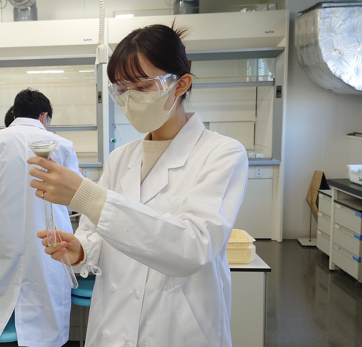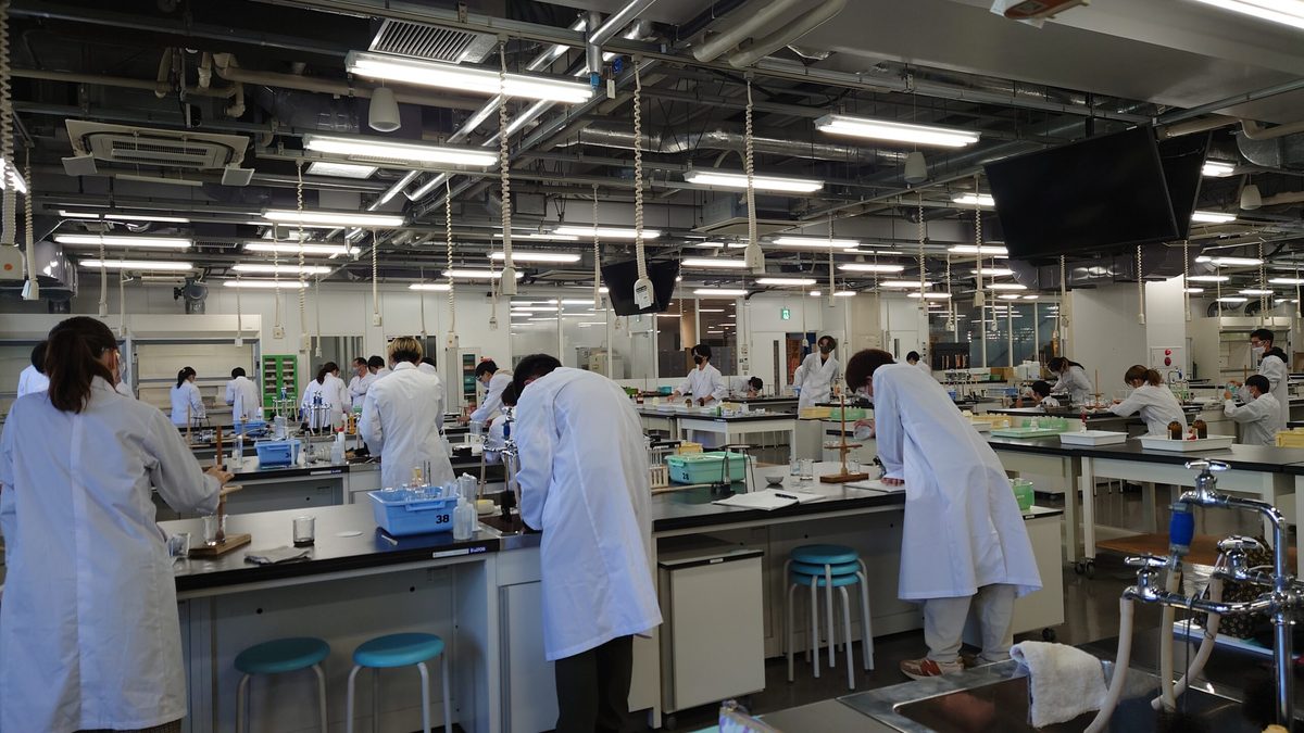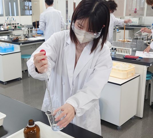理学部では教職課程・理科(中・高)の学生さんに向け、化学実験を開講しています。