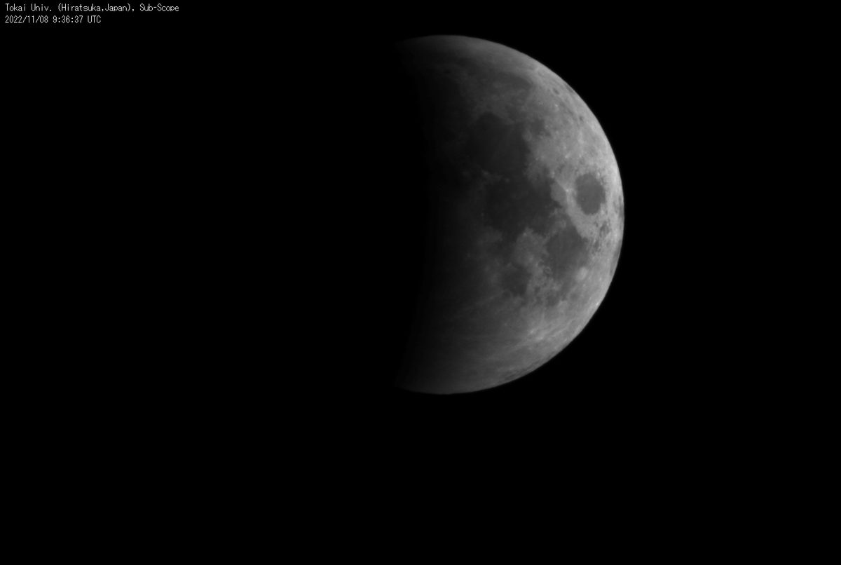 11月8日は皆既月食がありましたね。写真は本学、湘南キャンパスに設置されている「インターネット望遠鏡」が捉えた一枚。影がかかる月。天体ショーのスケールに圧倒されます。