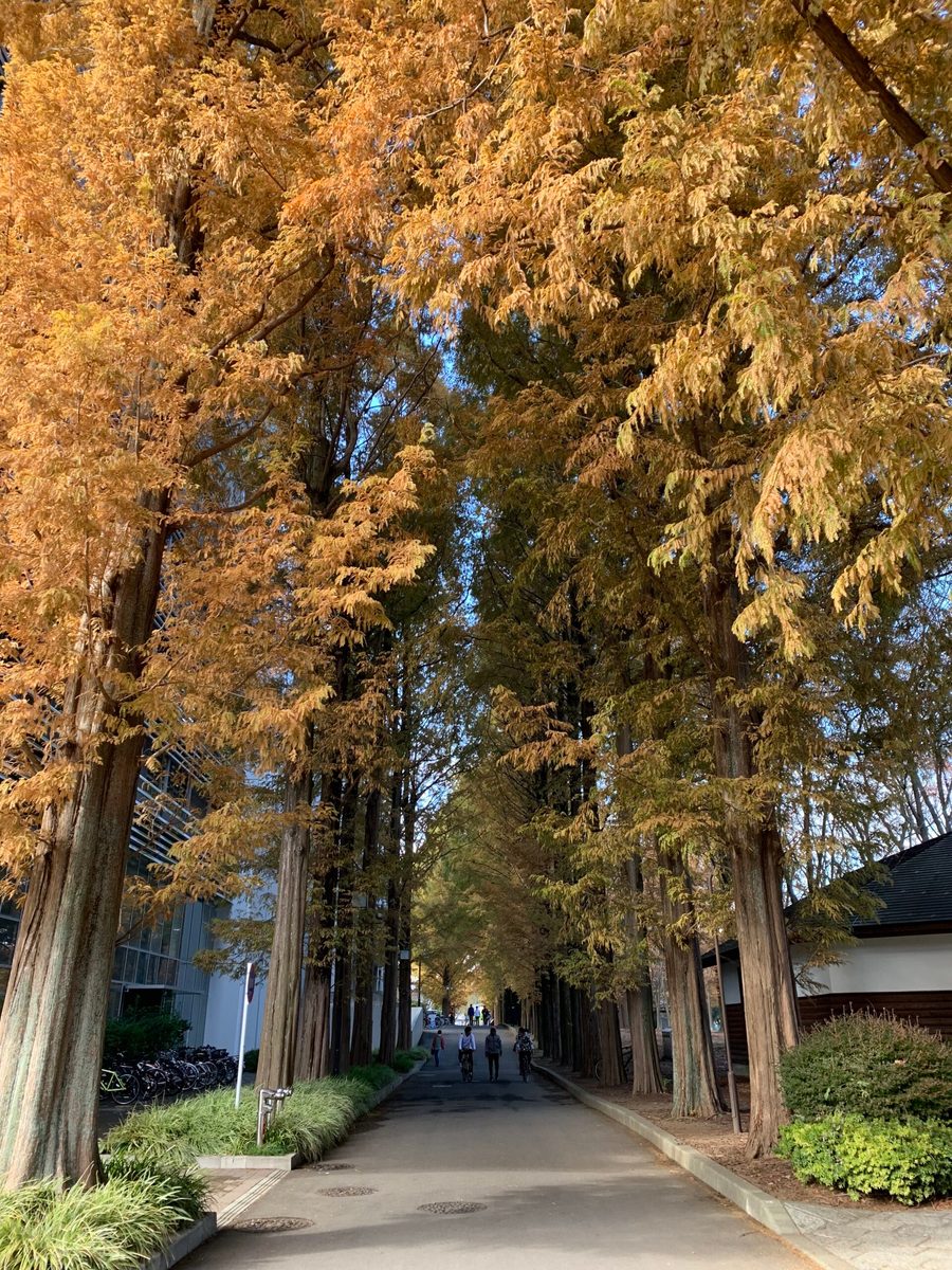 写真は物理学科がある18号館近くのメタセコイアの並木道です。