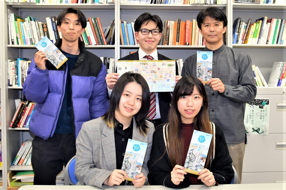 観光学部観光学科の本田量久教授の研究室に所属する学生11名が、観光リーフレット「湘南エリア旅なびガイド特集版 大学生が紹介!見どころづくしの湘南サイクリング旅」を作成しました。本件は神奈川県湘南地域県政総合センターとの連携事業で、昨年5月からはじめた資料収集や現地調査をもとにリーフレットを作成し、今年2月に2万部が完成。平塚市、茅ケ崎市、大磯町の役場や観光協会などで配布されているほか、県のホームページでも紹介されています。