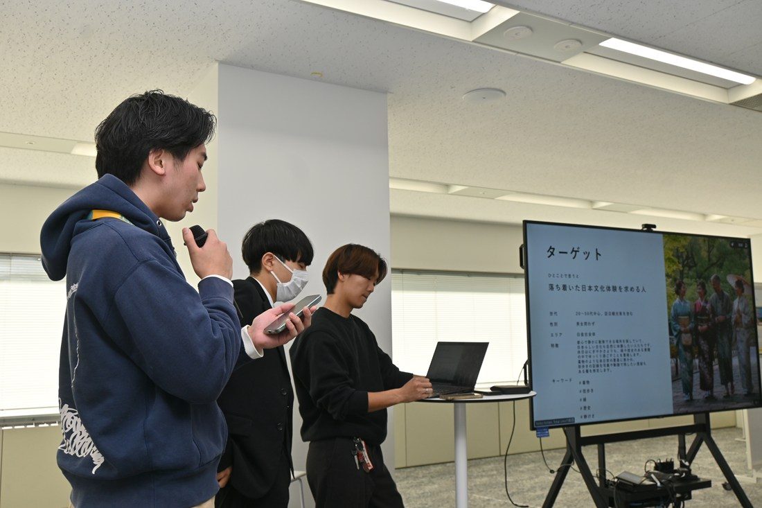観光学部の小谷恵子准教授のゼミナールで学ぶ3年次生15名が、12月1日に東京都港区の日本電気株式会社(NEC)本社で開催されたワークショップ「新しい観光地を創る」の最終報告会でプレゼンテーションしました。このプログラムは、「社会価値創造型企業」を掲げる同社が、未来の価値創造を担う学生の成長を支援する取り組みの一環として実施したもので、小谷准教授のゼミでは地域経済の活性と関係人口創出を目指し、グループワークに取り組んできました。